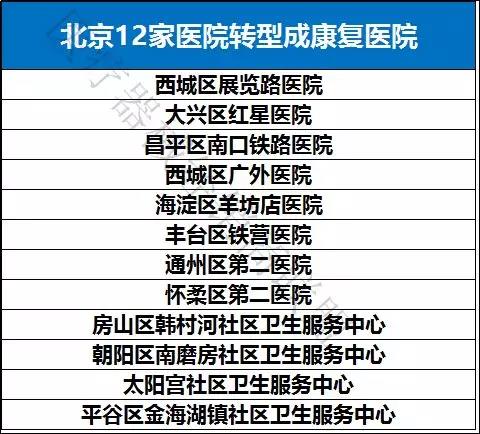 早在2016年,北京就推动了西城区展览路医院等12家公立医院向康复机构转型,同时今年将推动3家公立医院向康复医疗机构转型。