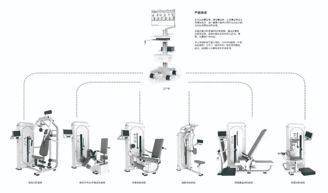 有氧训练系统,它为心肺康复提供了一个直观、精准的心肺有氧康复训练工具,并且非常灵活,可以适应各种不同病人的需求。它可以以功率为单位设置默认训练方案或手动调整功率,并且可以显示患者的训练情况,包括患者的心率、心电图血压、血氧饱和度等重要生理指标,还具有实时座椅高度电动调节、实时功率调节、显示转速、自动血压测量等功能。