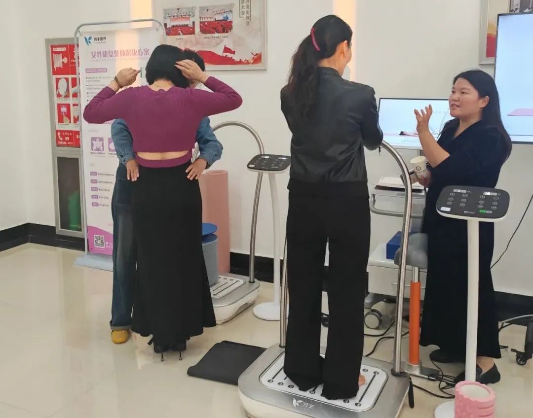 互动体验环节,李林老师诚邀现场的老师亲自上阵,通过亲身体验来加深对骨盆评估方法的理解。在这一环节中,老师们积极参与,气氛热烈。随后,借助羽丰医疗提供的高三维骨盆矫正治疗系统,李林老师根据每位体验老师的骨盆评估结果,量身定制了振动治疗方案。这一针对性的治疗措施实施后,骨盆矫正效果立竿见影,不少老师惊叹于治疗效果之显著,纷纷表示要进一步了解和尝试这一先进的治疗系统。