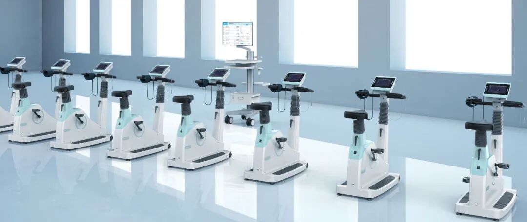 心肺康复训练系统,它为心肺康复提供了一个直观、精准的心肺有氧康复训练工具,并且非常灵活,可以适应各种不同病人的需求。它可以以功率为单位设置默认训练方案或手动调整功率,并且可以显示患者的训练情况,包括患者的心率、心电图、血压、血氧饱和度等重要生理指标,还具有实时座椅高度电动调节、实时功率调节、显示转速、自动血压测量等功能。
