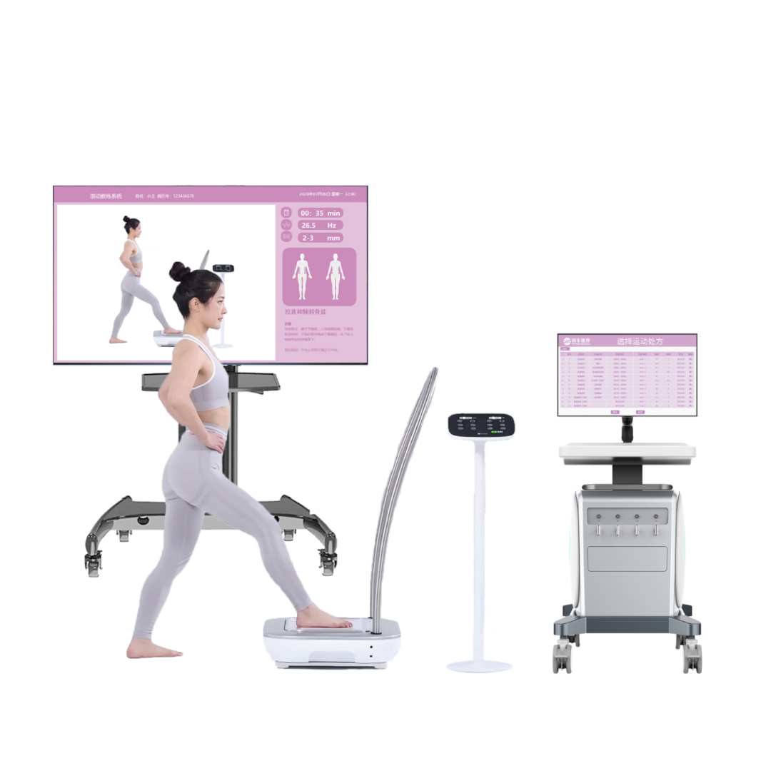 三维骨盆矫正修复系统是基于人体行走的步态模式而设计的左右交替倾斜运动模式的设备。可以引起两侧骨盆的交替倾斜同行走时的模式相似,而且速度更快。当振动达到一定频率时,肌肉开始产生牵张反射,能更好的锻炼肌肉间/肌肉内的协调性,激活从下肢到躯干的所有肌群,使全身肌群得到高效的训练。