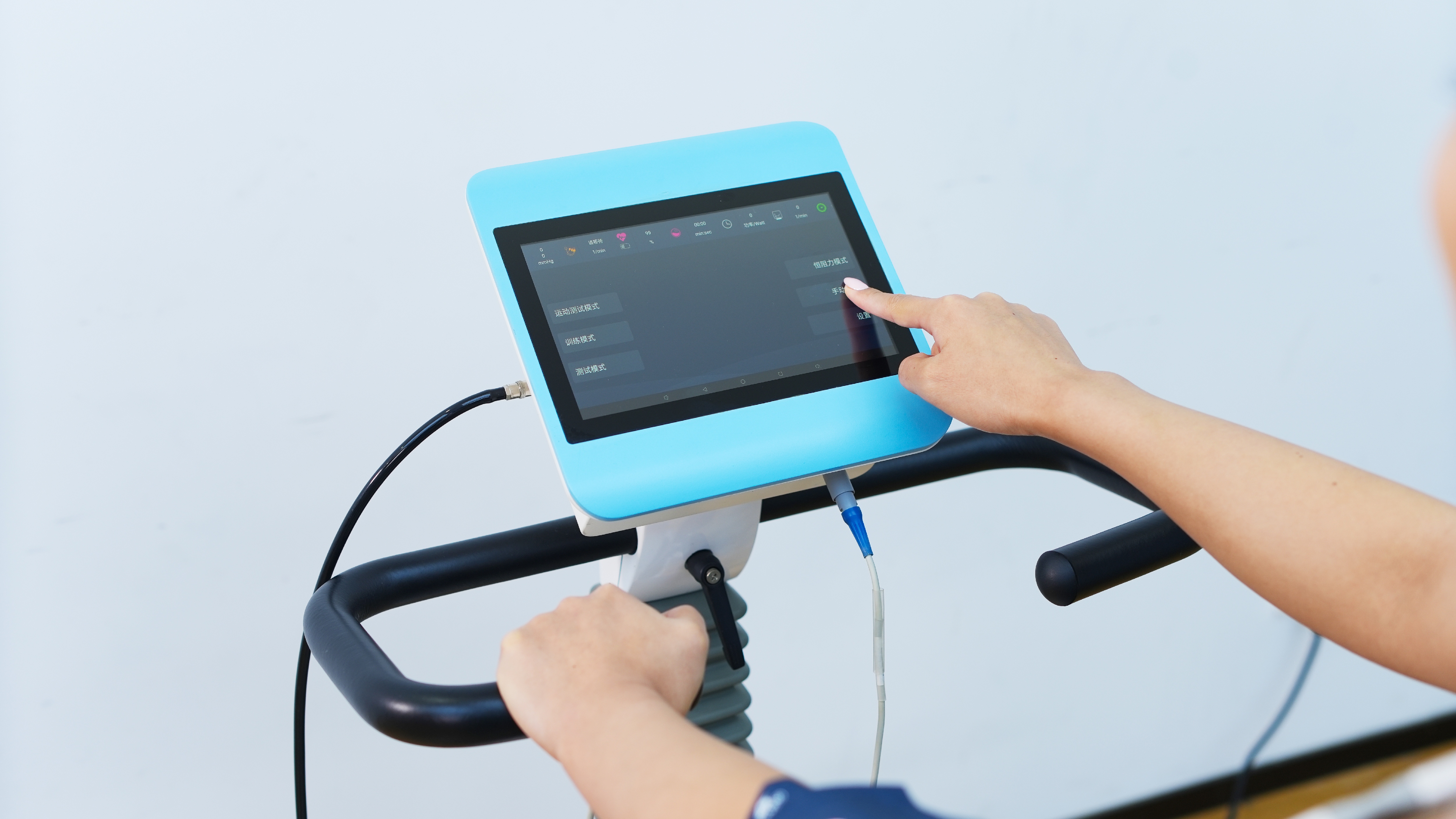 系统软件支持详细的患者信息管理,涵盖多种处方类型,适配不同人群。座椅高度电动连续调节、把手位置手动可调、车身角度灵活适配,无论是肥胖患者、行动不便者,还是老年高血压人群,都能找到舒适且安全的训练姿势。