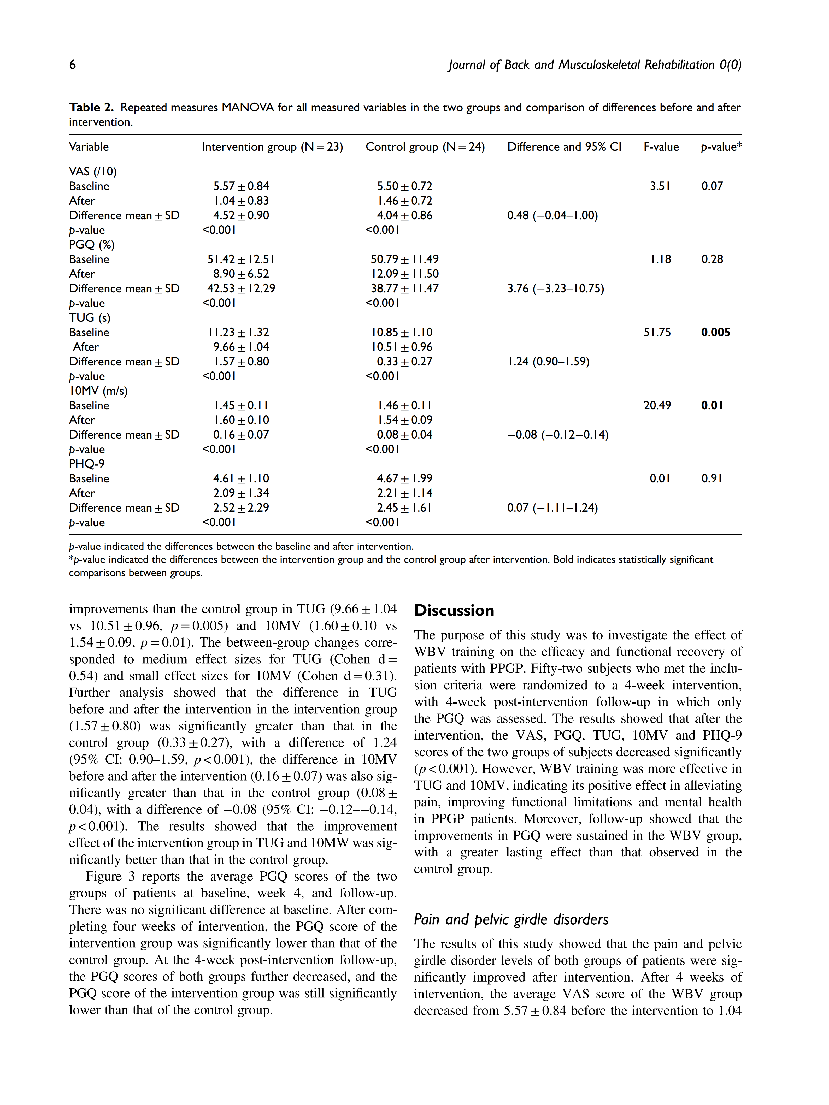 ●本研究旨在填补这一空白,探讨WBV联合核心训练对PPGP患者的疼痛、功能和生活质量的改善效果。