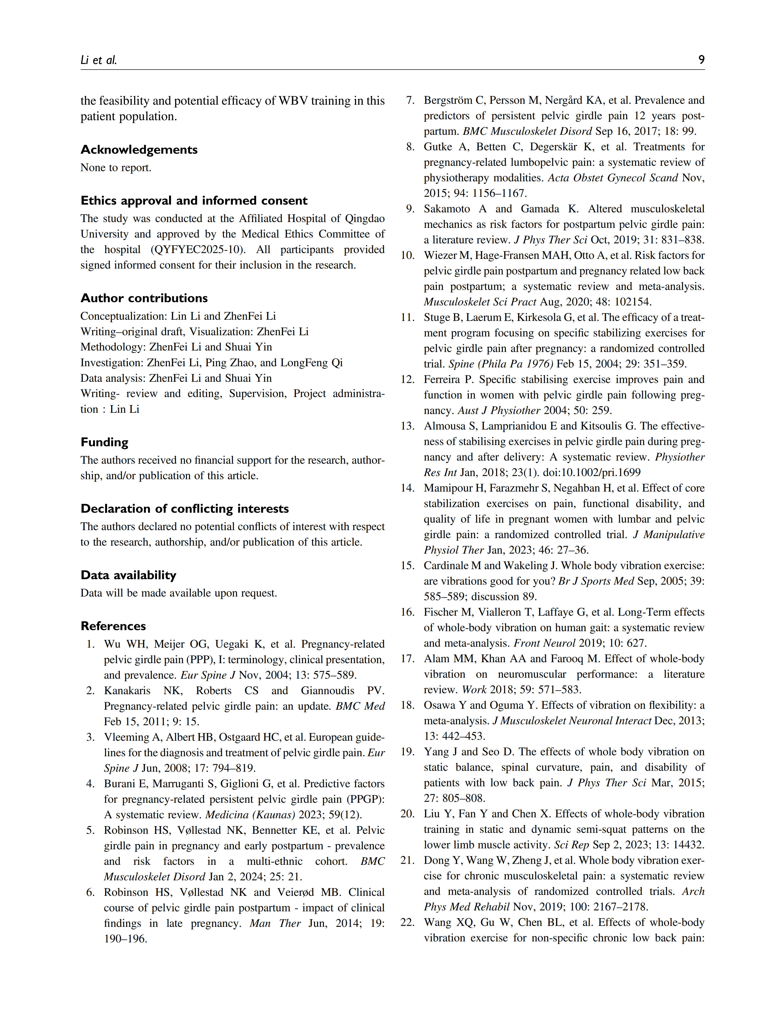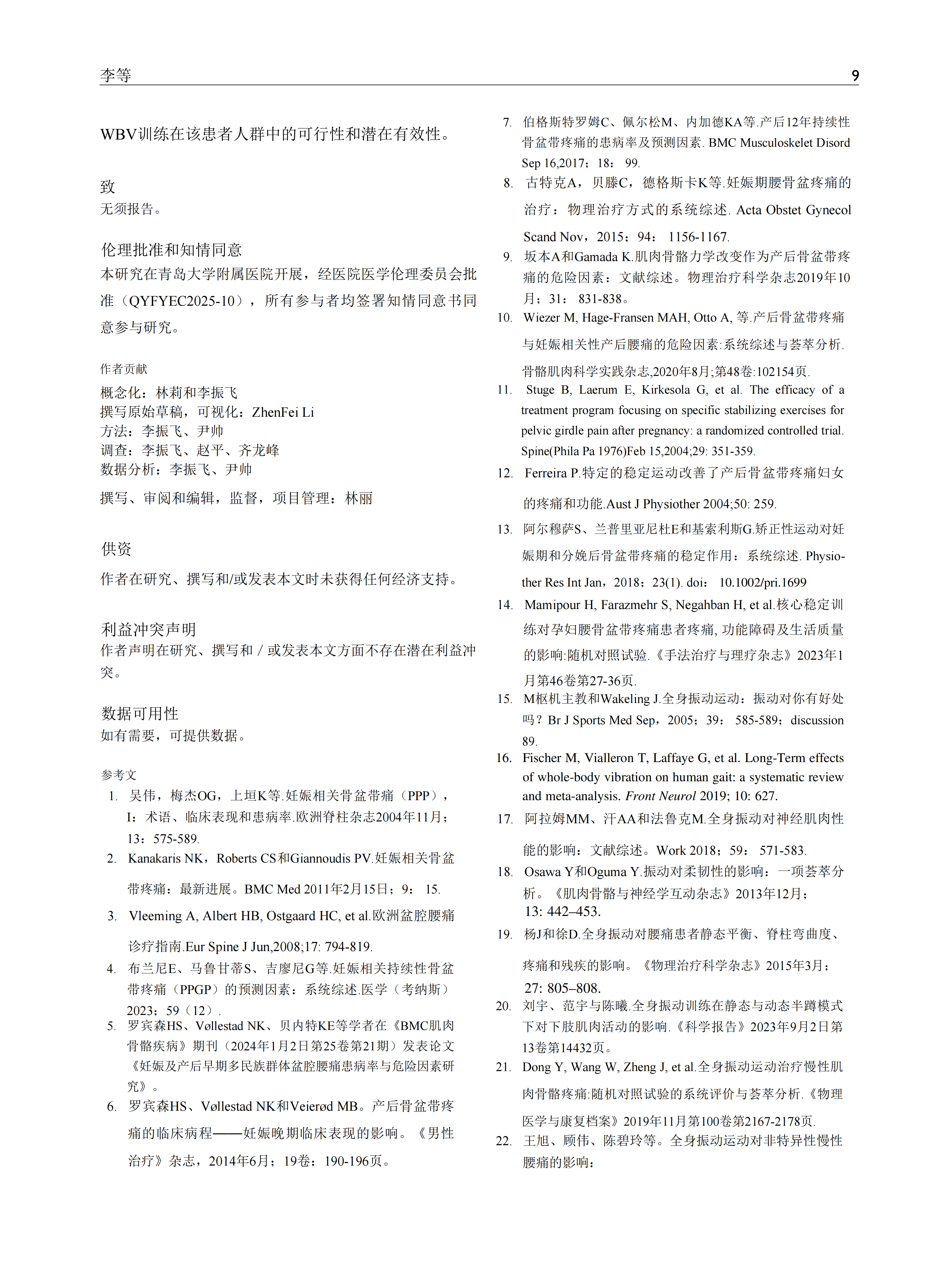 《The efficacy of whole-body vibration training in alleviating postpartum pelvic girdle pain:A randomized controlled trial》
