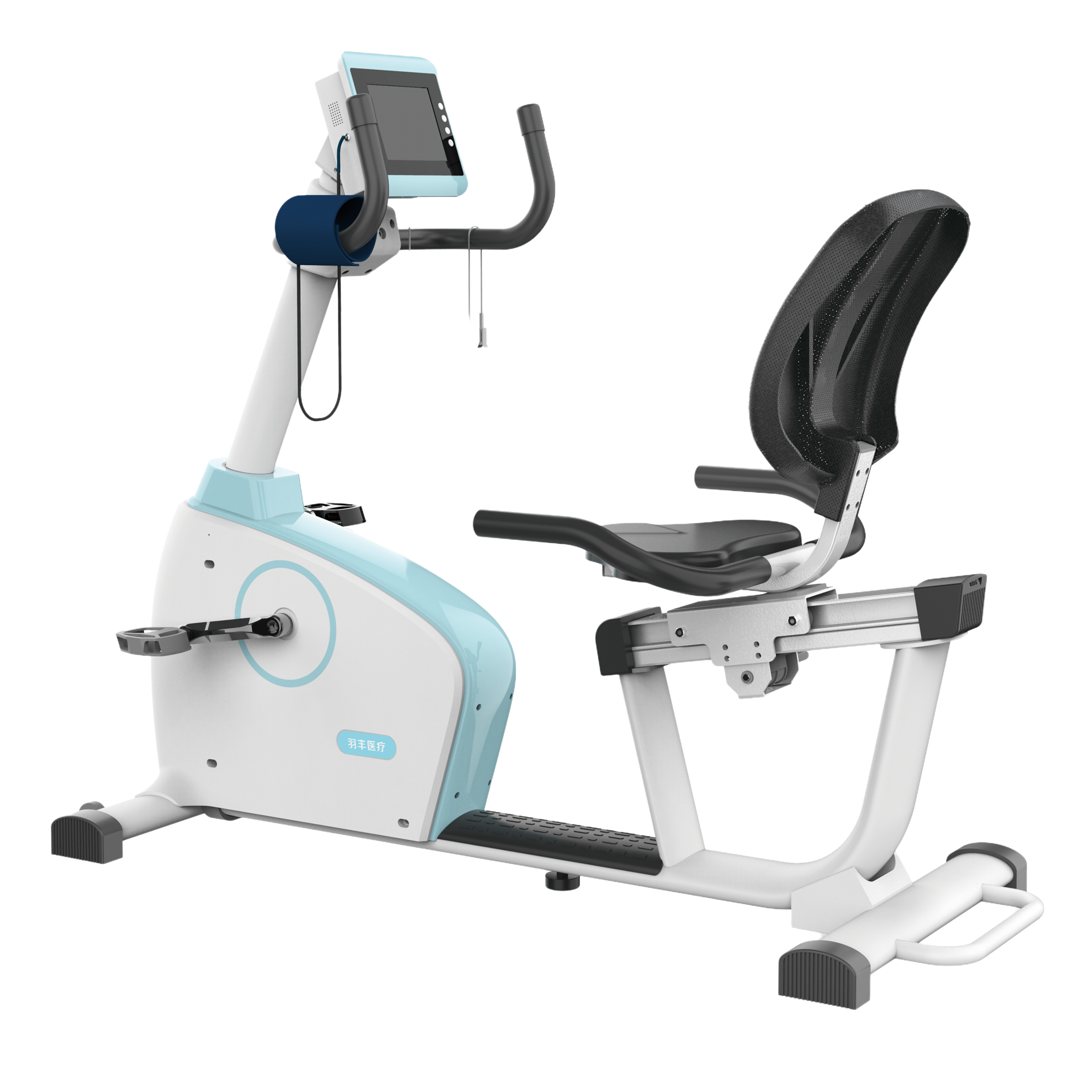 有氧康复训练系统,它为心肺康复提供了一个直观、精准的心肺有氧康复训练工具,并且非常灵活可以适应各种不同病人的需求。它以功率为单位设置默认训练方案或手动调整功率,并且可以显示患者的训练情况,还具有实时座椅高度电动调节、实时功率调节、显示血压、血氧饱和度、功率、转速等重要数据。