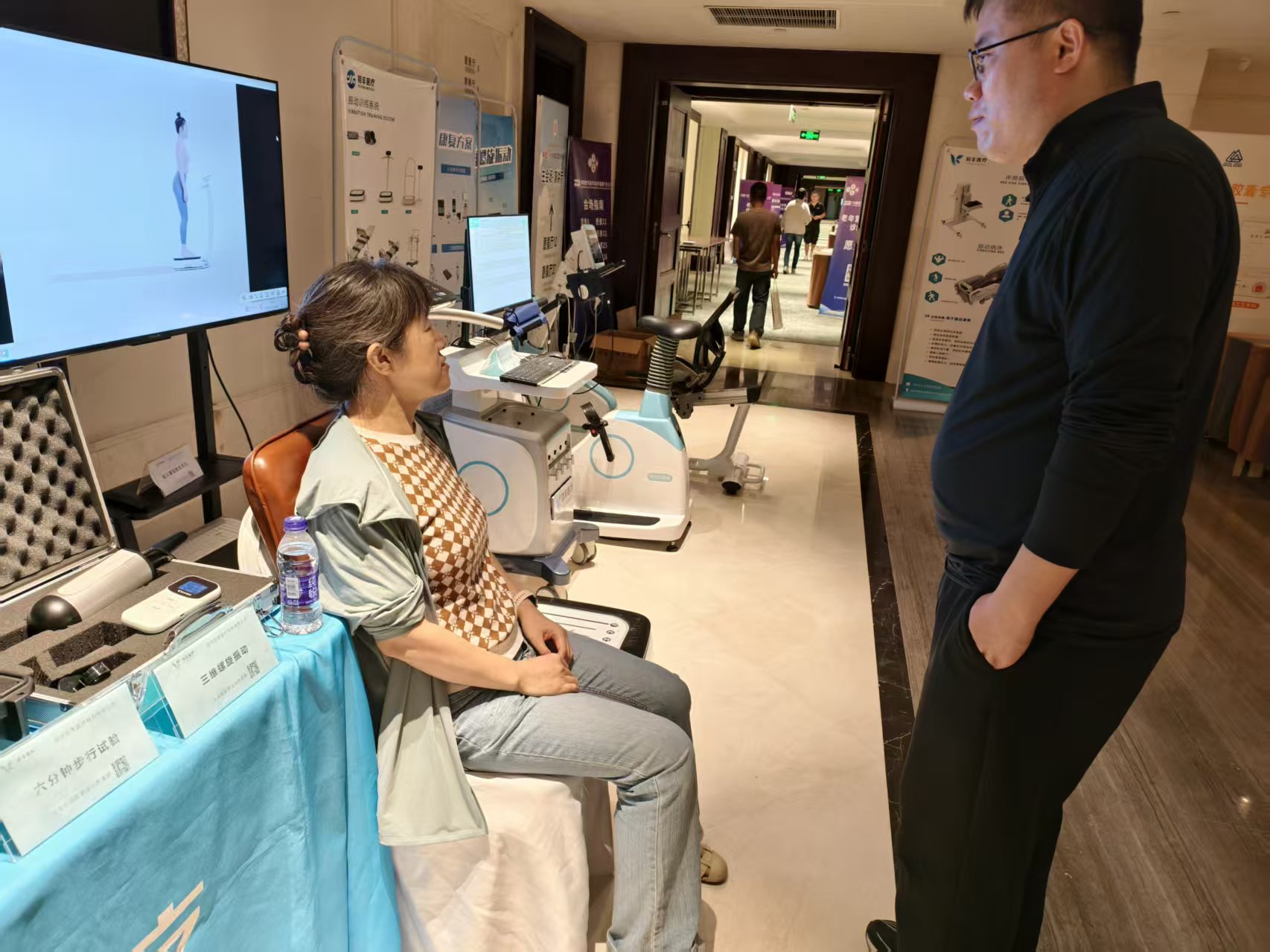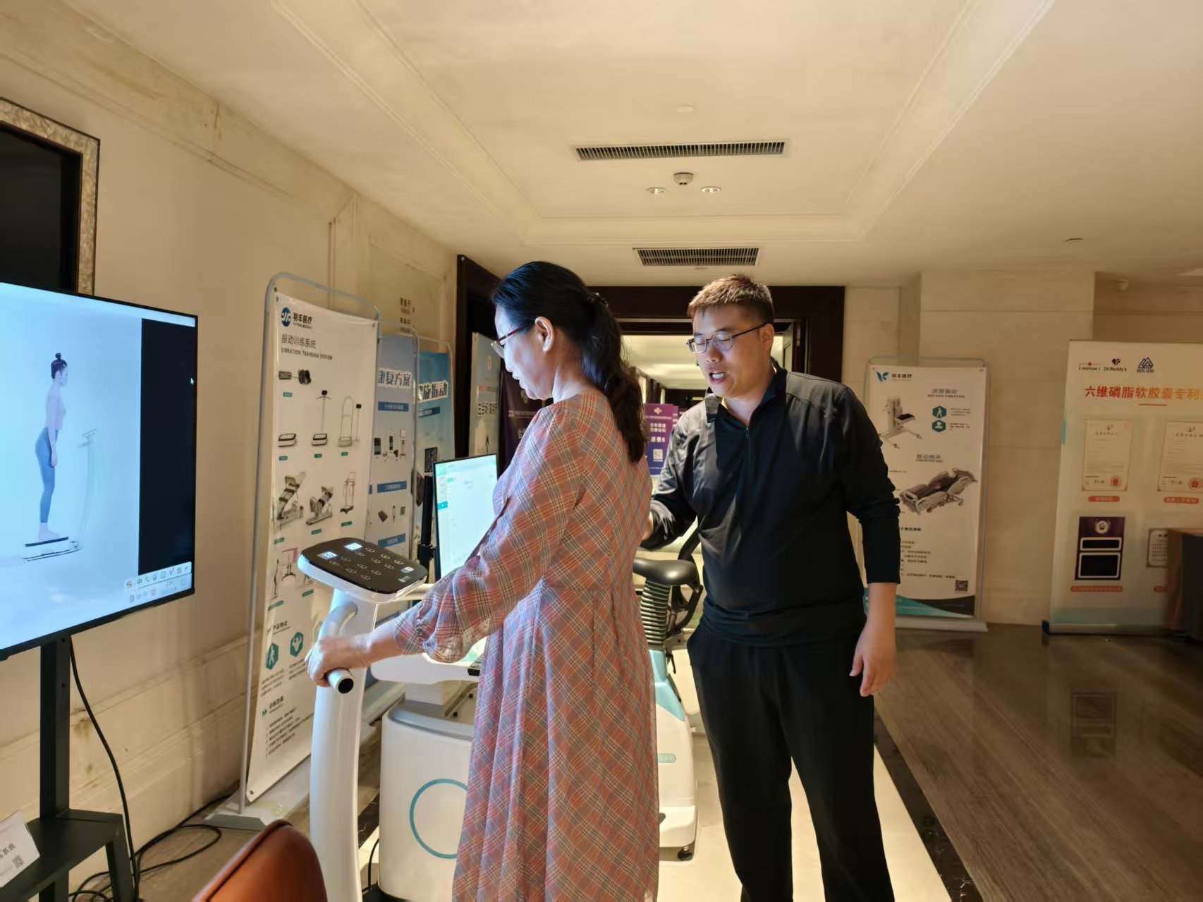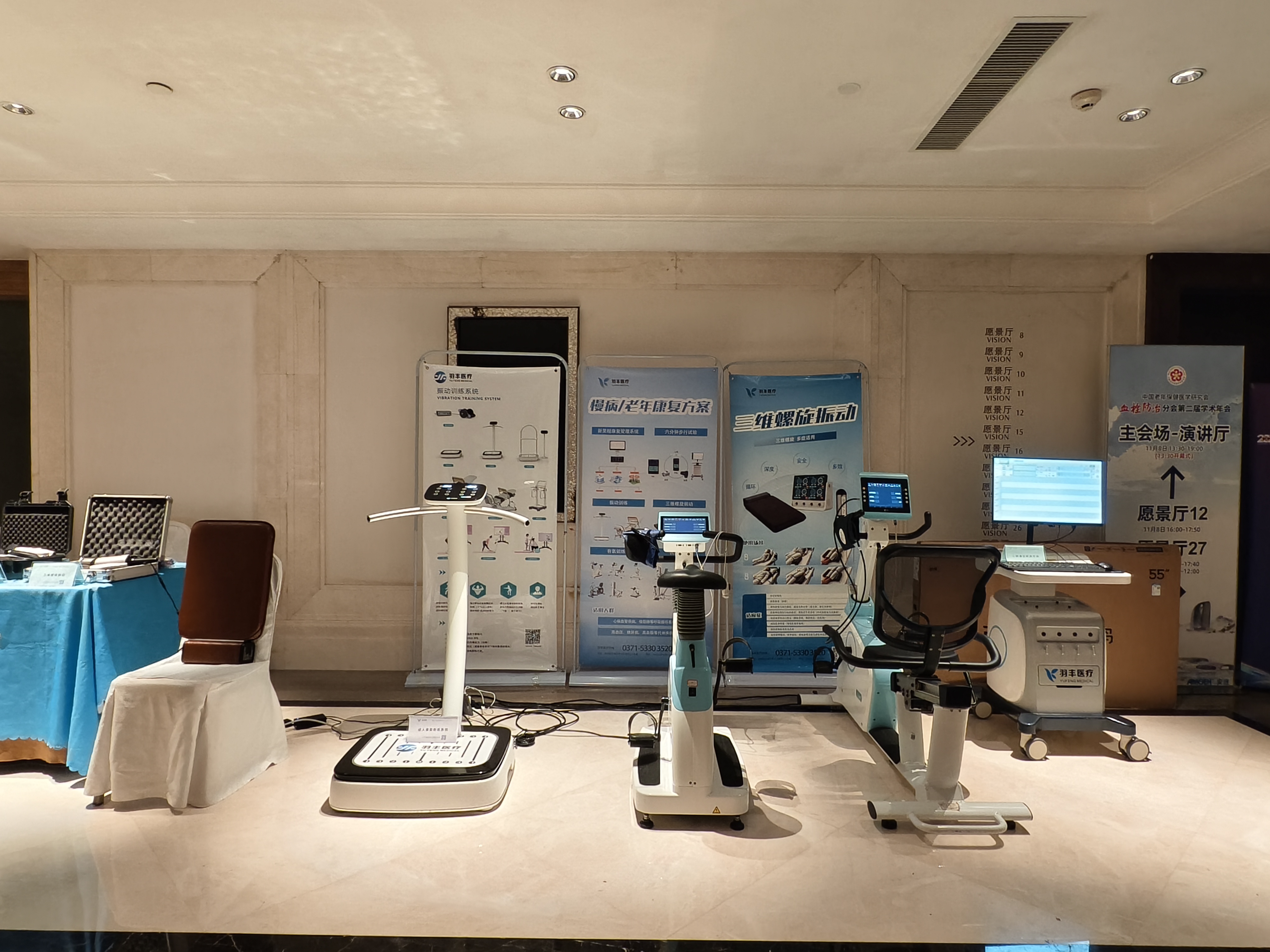 在本届大会同期举办的老年健康产品展示区,羽丰医疗的展台人气鼎沸。我们重点展示了慢病/老年康复方案、振动训练仪以及三维螺旋振动。
