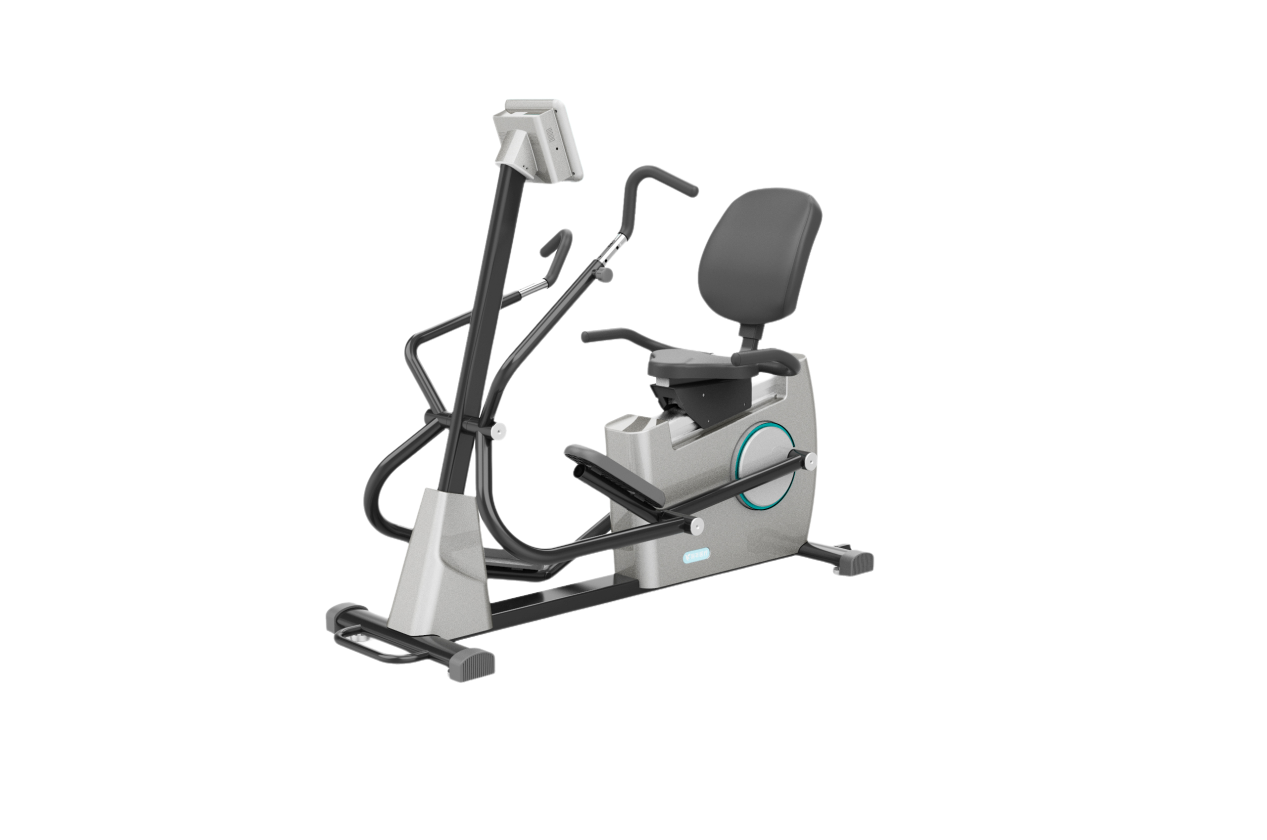 有氧训练系统,它为心肺康复提供了一个直观、精准的心肺有氧康复训练工具,并且非常灵活,可以适应各种不同病人的需求。它可以以功率为单位设置默认训练方案或手动调整功率,并且可以显示患者的训练情况,还具有实时座椅高度电动调节、实时功率调节、显示血压、血氧饱和度、功率、转速等重要数据。